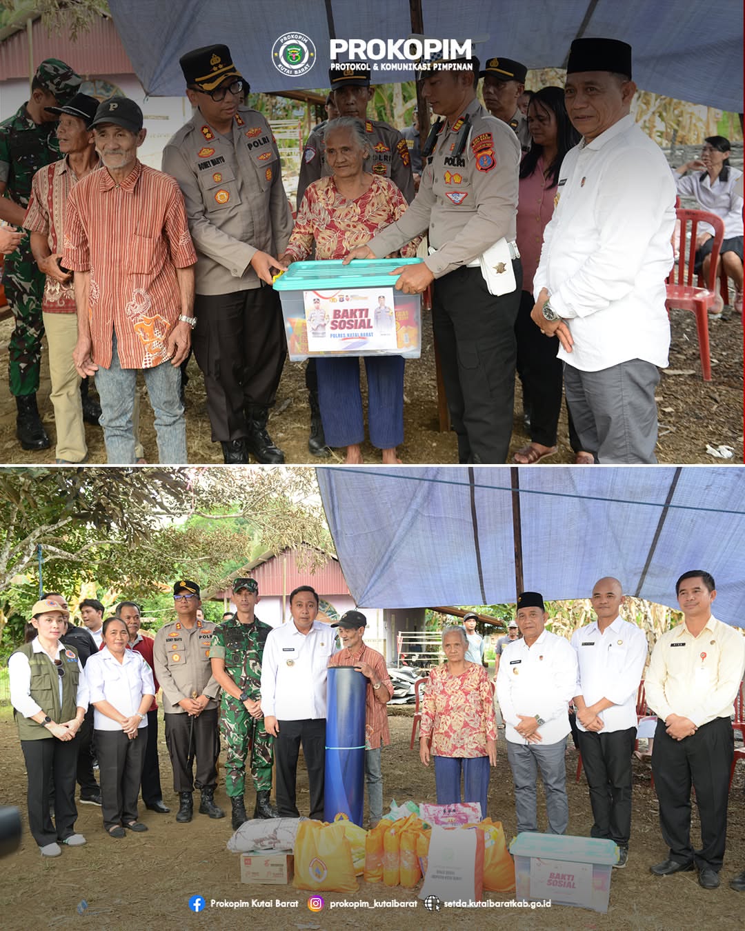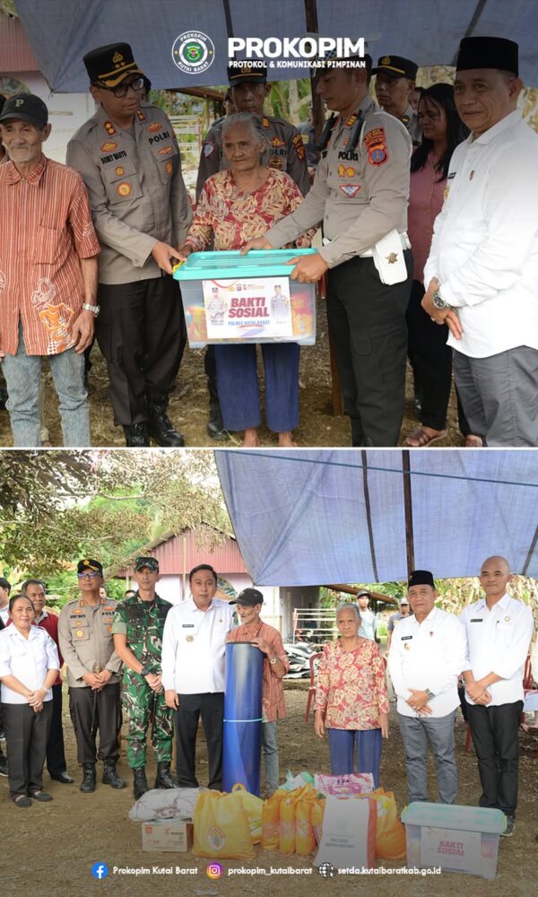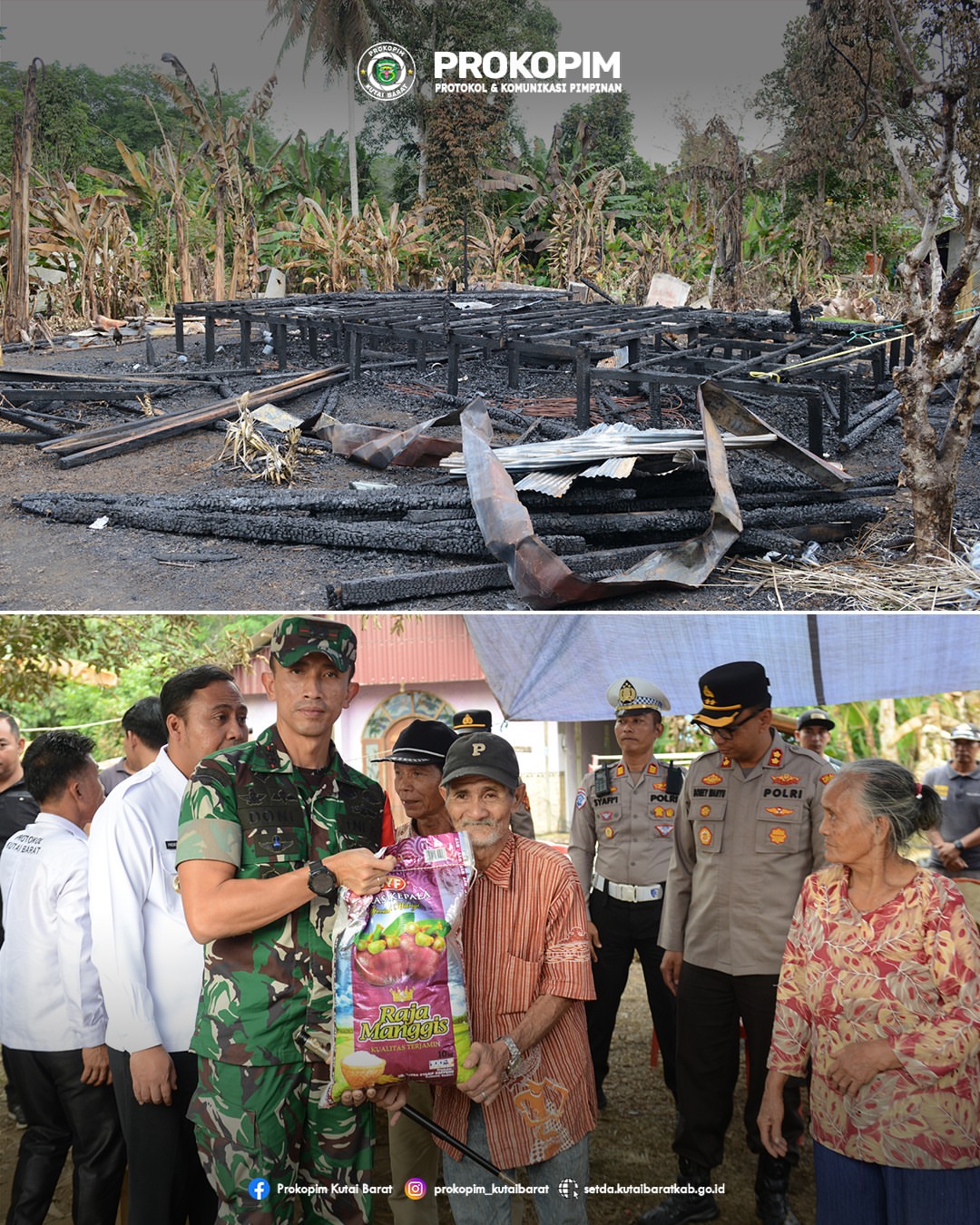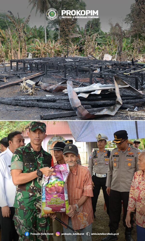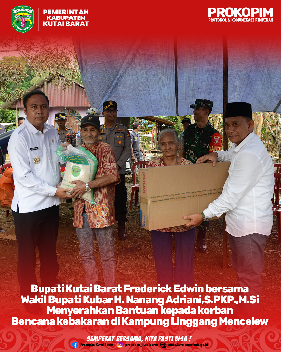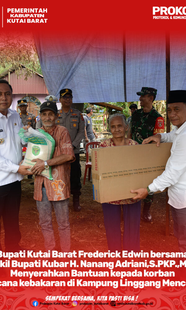 Bupati Kutai Barat Frederick Edwin dan Wakil Bupati Kutai Barat H. Nanang Adriani, S.PKP., M.Si menyerahkan bantuan kepada korban musibah kebakaran yang terjadi di jalan Mangkujaya IV, RT 3 Kampung Linggang Mencelew