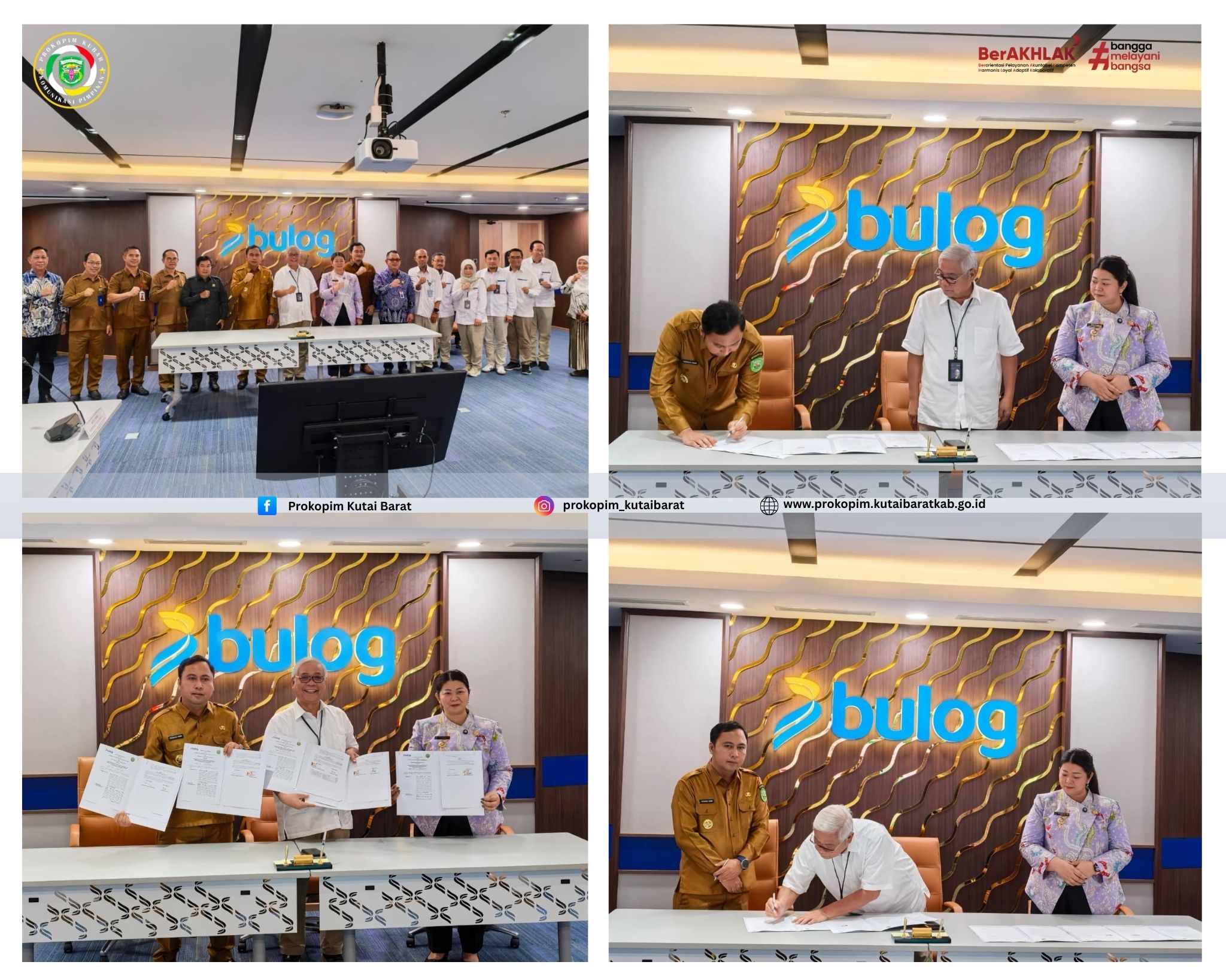 JAKARTA, PROKOPIM. Pemerintah Kabupaten Kutai Barat serius mewujudkan ketahanan pangan masyarakatnya, sejumlah upaya dilakukan dan salah satunya adalah bersinergi dengan Perum Bulog. Dalam kemitraannya Perum Bulog wacananya akan membangun Gedung Bulog di Kutai Barat hal ini guna mendukung ketersediaan pemenuhan kebutuhan pangan dalam hal ini beras. Dalam sambutannya Frederick Edwin menyampaikan apresiasi dan terimaksih atas sudi perkenannya Perum Bulog menjadikan salah satu lokus pembangunan Gudang Bulog. Sebagaimana kita ketahui bahwa Bulog mengelola cadangan pangan pemerintah, menstabilkan harga pangan pokok (khususnya beras), serta melakukan distribusi dan pengadaan (impor/domestik) untuk menjaga ketahanan pangan nasional. Fungsinya meliputi pengamanan harga (produsen/konsumen), pengadaan, penyimpanan, hingga penyaluran bahan pokok seperti beras, gula, dan minyak. Dan ini menjadi sangat urgent Kutai Barat terutama dalam pemenuhan kebutuhan pangan pokok. Direktur SDM dan Transformasi Bulog Pusat Bapak Profesor Sudarsono Hardjosoekarto menyampaikan pembangunan gudang Bulog ini adalah salah satu agenda dari pusat dan di anggarkan ada 100 titik pembangunannya dsaat ini sudah ada 126 titik usulan yang kemudian akan diverifikasikan kemudian dan akan dilihat tingkat urgensi dan kebermanfaatannya. Perum Bulog juga menyambut hangat maksud dan tujuan dari Pemda ini. Dan menyampaikan agar dapat dilakukan hibah tanah kepada Perum Bulog. Mendukung hal tersebut Bupati Kabupaten Kutai Barat mengarahkan melalui sambutannya agar seluruh perangkat daerah yang terkait dengan memedomani peraturan untuk mendukung percepatan pelaksanaan pembangunan gudang Bulog di Kutai Barat. Bupati juga berharap dengan hadirnya Bulog di Kutai Barat akan menunjang optimalisasi dari pemenuhan kebutuhan pangan di Kutai Barat, imbuhnya. Dalam nota kesepahaman kedua belah pihak antara Pemkab Kubar dan Perum Bulog disampaikan bahwa maksud dilaksanakannya MoU (Memo of Understanding) adalah untuk memberikan jaminan dan kelancaran pembangunan Infrastruktur Pasca Panen Perum Bulog. Diharapkan dengan terlaksananya dengan sukses ini bertujuan untuk meningkatkan potensi dan menyinergikan sumber daya yang dimiliki oleh Kutai Barat demi menjaga stabilitasi, ketersediaan dan keterjangkauan pangan di Kutai Barat. Harapan ini menjadi angin segar bagi Kutai Barat untuk mencapai ketahanan pangan. (Prokopim 01)